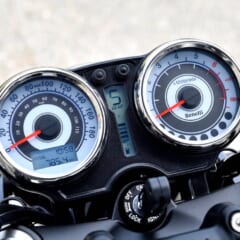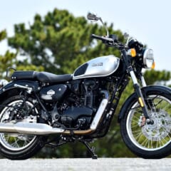 【Benelli IMPERIALE400】■全長2170 全幅820 全高1120 軸距1440 シート高780(各mm) 車重205kg(装備) ■空冷4ストSOHC単気筒374cc 21.1ps/5500rpm 2.9kg-m/5500rpm 変速機5段リターン 燃料タンク容量12L ブレーキF=ディスクφ300mm R=ディスクφ240mm タイヤサイズF=100/90-19 R=130/80-18 ●色:銀 黒 ●価格:59万9500円