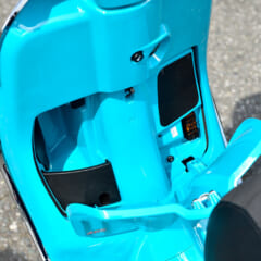 【VESPA Sprint S150 ABS】■全長1852 全幅680 全高NA 軸距1334 シート高790(各mm) 車重130kg(装備) ■空冷4ストSOHC単気筒 155cc 12.9ps/7750rpm 1.3kg-m/6500rpm 変速機CVT 燃料タンク容量7L ブレーキF=ディスク R=ドラム タイヤサイズF=110/70-12 R=120/70-12 ●色:青 ●価格:52万8000円