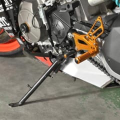 【2】車体はサイドスタンドで立てておく。当然のことながら、簡単に外れない状態か確認しておく。