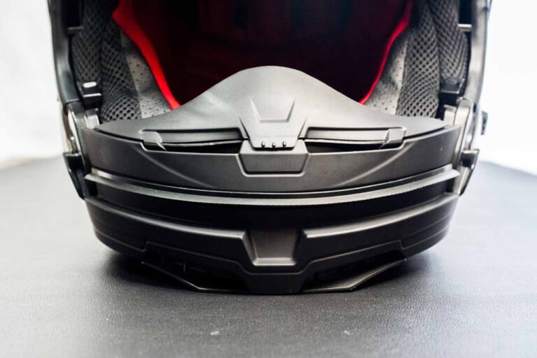 フェイスガード本体にチンカーテンが装着されていることもあり、下からの巻き込み風がしっかりとシャットアウトされ、静粛性が大幅にアップします。