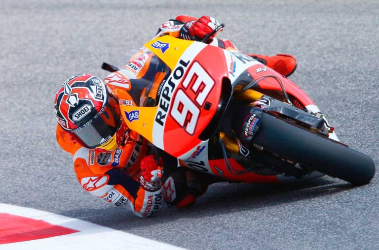 ペドロサ選手を堂々と押さえ、首位と6.201秒差の3位になったマルケス選手。
