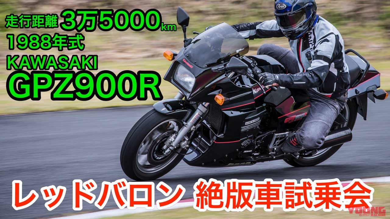 レッドバロンが主催する二輪媒体関係者向けの「絶版車試乗会」が那須モータースポーツランドで開催。こちらはレッドバロンが販売する整備済み中古車に試乗できるという機会で、今回も20台近い試乗車が用意された。試乗したのは映画「トップガン・マーヴェリック」でも再び注目を集めているカワサキGPZ900R。ノーマル状態を保つ希少な前輪16インチの前期型(1988年式)で、走行距離は3万5000kmオーバー。外装はキレイなものの、レッドバロンが丹精込めて整備したその乗り味はいかに? 試すのはフリーライターの谷田貝洋暁だ(172cm/75kg)。