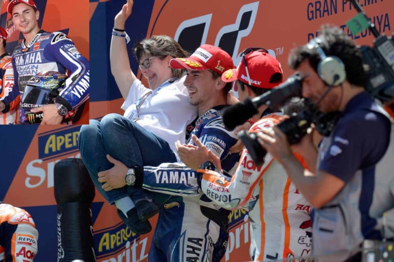 じつはこのとき、私は現地に行っておらず日本にいて、決勝はTVの解説を頼まれていたのですが、金曜日の段階で現地のブリヂストンスタッフやドルナスポーツのカルメロ・エスペレータ会長などから多数の電話が入ってきて、対応策を協議していました。私は、憂鬱な気分でTV解説をしていましたが、フィリップアイランドのコースは、ピットロードがやや狭いので、混乱して事故が起きないかとにかく心配でした。結果的には転倒者や接触事故はなく、ライダーやチーム、ドルナやIRTA(国際ロードレーシングチーム連盟)などにとにかく感謝したのですが、マルケス選手がチームメカニックのミスによりピットインの周回数を誤って、失格扱いに……。これでマルケス選手とランキング2番手のロレンソ選手は18点差まで縮まりました。