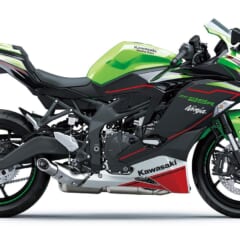 【予想モデル:'23 KAWASAKI Ninja ZX-4R】デザインを含めて25Rがベースとなり、2気筒ニンジャの250と400のような関係となることに。4Rでは排気量に合わせてマフラーや足まわりが強化されるだろう。
