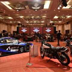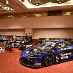 会場のヒルトン東京には、ウエマツが提供した映画の劇中車や、植松社長がGT選手権で駆るマクラーレンのレーシングカーなどが展示された。