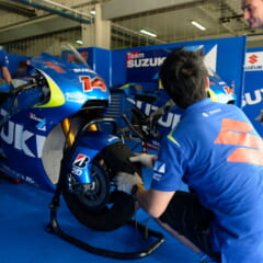 2月のセパンテストで、翌年からのMotoGP復帰に向けて直4エンジンのGSX-RRをテストするスズキ。4月にはオースティン、アルゼンチン、そしてシーズン末のバレンシアテストと精力的にこなしていた。
