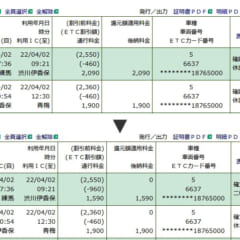 上の2つの利用証明書は、筆者が定率割引のテストをした際のもの。関越道・練馬→伊香保間の料金が上下で変わっている(下が定率割引料金)のが分かる。また、帰路は都合で青梅で降りたため、走行距離が100kmに満たず、割引が受けられなかった。