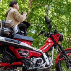 メーカーの公式写真にもコンセプトの違いがよく表れている。バイクがコミュニケーションを繋いでくれるダックス125に対し、ヘビーデューティなCT125ハンターカブという見せ方だ。