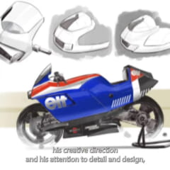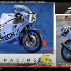 ヤマハヨーロッパの動画内で公開されたスケッチの1枚。壁のように切り立った角型ライト&ゼッケンスペースはOW74そのものだが、ウイングレットやライト下のカメラといった現代流のディテールも盛り込む。