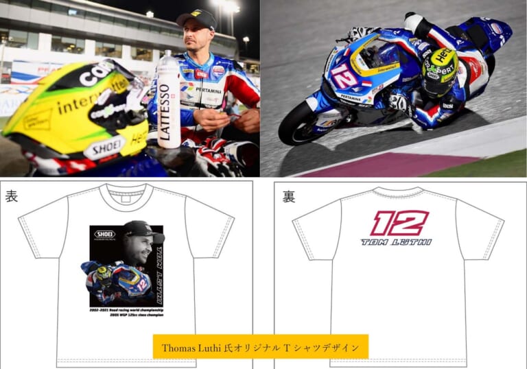まずは、2021年シーズンを最後にMoto2ライダーとして現役引退を表明し、来季はMoto3参戦中のチーム『PruestelGP(プルステルジーピー)』のスポーツディレクターに就任が決まっているトーマス・ルティ選手が、11月15日(火)に東京へやってくる。イベントではルティ選手オリジナルTシャツの即売会、サイン会、フォトセッションが予定されており、参加にあたってはSHOEIオフィシャルサイトから『my SHOEI』への会員登録が必須となる。
