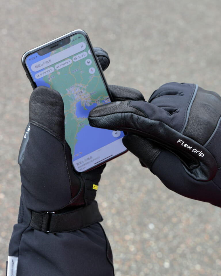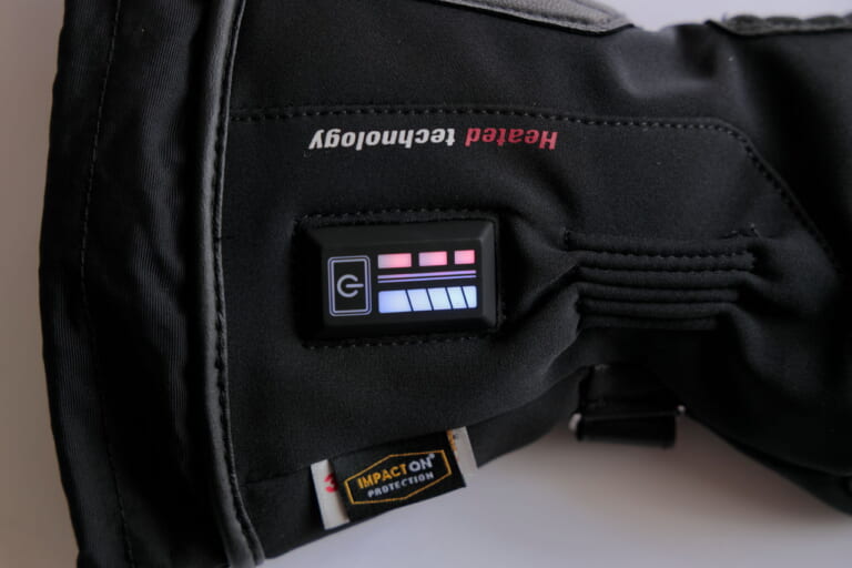 温度調整は3段階とされ、新たに追加されたバッテリー残量確認機能は4段階。甲側と掌側にCE規格適合のプロテクターを、中綿素材はコンフォマックスと3M製シンサレートを採用し、親指と人差し指にはタッチパネル操作可能な素材も用いた。