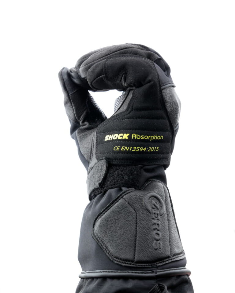 甲側と掌側にCE規格適合のプロテクターを採用。甲側は高級感を損ねないようにデザインを工夫してさりげなく配置。掌側はあえて目立たせることで、デザイン上のアクセントにしています。また掌側は、ゼロスグラブ2やゼロスグラブ ウインター同様に手の腹部分から小指側の側面部分にかけて長めのプロテクションで転倒時のダメージを最小限に抑えます。(前商品と同様)