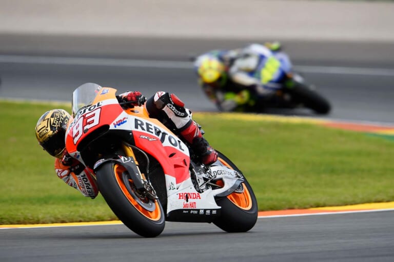 オーストラリアGPは、前年は路面改修の影響でタイヤがレースディスタンスに耐えられなかったことから、1年近くかけて構造とコンパウンドが異なるリヤタイヤを開発。リヤだけではなくフロントも左側が厳しいのは同じということで、左右非対称のフロントタイヤも投入しました。その他にも、ちょっとした問題が起こればきめ細かく対応していきましたが、とはいえ2014年はとくに大きなトラブルもなく、ホンダワークスチームのマルク・マルケス選手が圧倒的な強さを発揮してチャンピオンに輝いてシーズンが終了。我々にとって、残された時間はあと1年になりました。