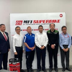 11月5日に鈴鹿サーキットで、国内4メーカーとMFJ、そして燃料メーカーのハルターマン・カーレス・ジャパンの責任者/担当者が出席して記者会見が行われ、来シーズンからJSB1000クラスに100%非化石燃料のバイオ燃料を導入することが発表された。