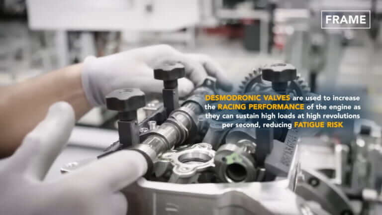 こうしたスーパーパフォーマンスを実現できるのは、上記のような設計に加え、ドゥカティ伝統のデスモドロミック(強制弁開閉)システムが効果を発揮しているからだ。この機構はMotoGPであっても有効で、他社のMotoGPマシンが圧縮空気を利用したニューマチックバルブを採用して超高回転を実現するなか、ドゥカティだけは機械式の開/閉カムシャフトによって最高峰クラス随一の最高速度を実現してしまっている。