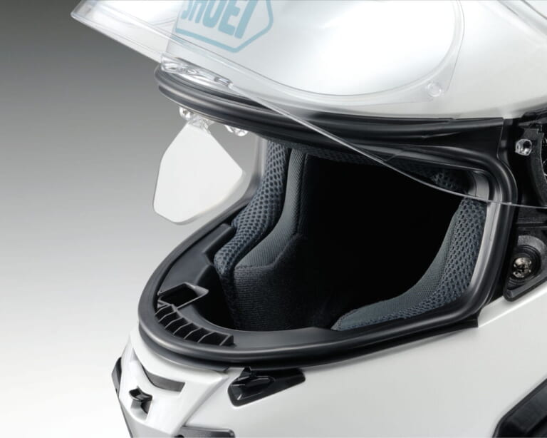 気になる重量バランスにも配慮されており、HUDやスイッチモジュールをデザインに組み込みながら最適化している。帽体は軽量&高剛性のAIM+構造で、内装のサイズ調整やコンバイナの位置調整は、スペシャリストによる「SHOEIパーソナルフィッティングシステム」のサポートで万全だ。もちろん、SHOEI水準のベンチレーションも完備する。