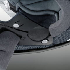 口元にマイクを内蔵。HUDユニットもチンガードの中にあり、調光センサーが中央下部にある。ベンチレーションは開閉可能。