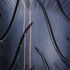 新品に見られる色の付いた線は識線とよばれ、製造工程での見分けに使われる。ヒゲのようなものはスピューと言い、製造する際の金型の空気穴由来のもの。