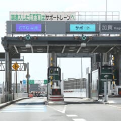 2022年3月から設置をスタートした高速道路料金所のETC専用料金所は、現在、首都高速の35カ所と東日本管轄の東京外環道の2カ所、中日本管轄の中央道と圏央道の計40カ所。非搭載車が誤って進入した際に係員と通話ができるサポートレーンが併設されている。