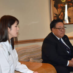 梅本まどかさんはアイドルグループ・SKE48を経て、現在はバイク業界などでマルチに活躍中のタレント。近年は4輪のラリーにも挑戦中だ。倉石誠司さんは本田技研工業の代表取締役会長でもあり、かつてのバイクブームを知るだけに“業界再生“への想いも強い。
