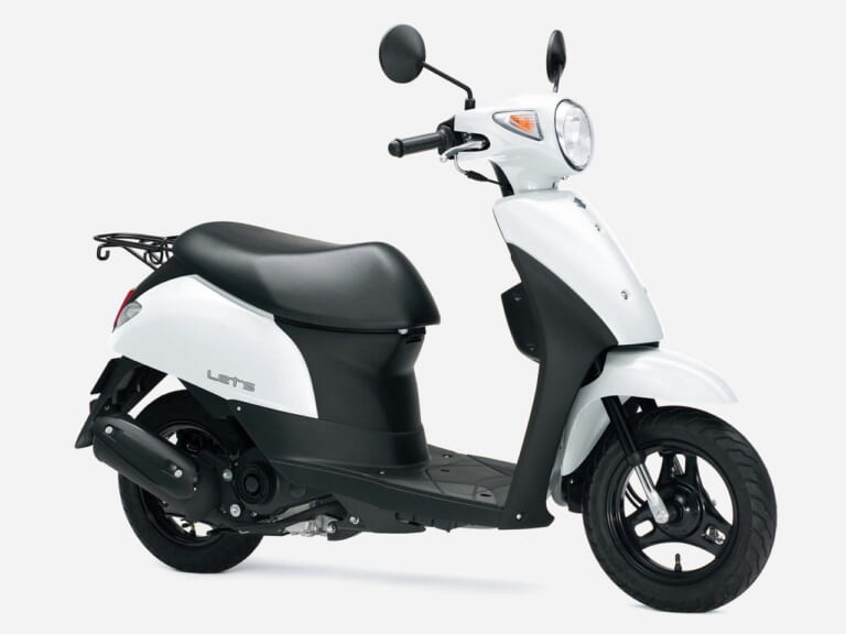 【SUZUKI LET’s】現行の原付一種でもっとも安価なのが、スズキのレッツで17万1600円。大村さんのリサーチによると、官僚の方々が考える原付一種の妥当な金額は15万円で、このレッツでもまだ高価。大村さんは25万円以下で新車が買えればいいと考えているそうだ。