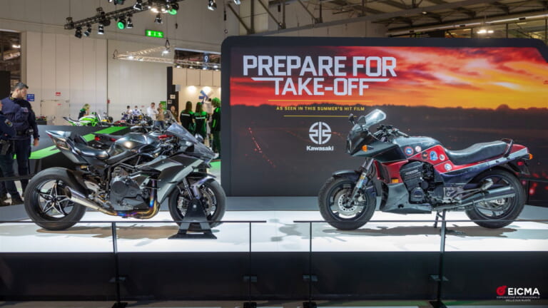 「離陸に備えよ」って…ニンジャが飛び立つのカワサキさん!? EICMAに展示されていたGPz900Rは1984年型。フロントホイールが16インチの第一世代で、1986年公開の「トップガン」でマーヴェリ[…]