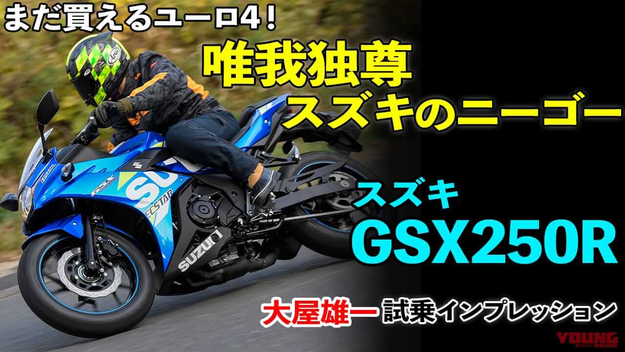 各社がラインナップする250ccクラスのフルカウルモデル。それぞれ独自の味わいを持つが、スズキのGSX250Rが目指すのは快適性と実用性。攻め込んだアグレッシブなルックスから受ける印象とは異なり、低中速域で生み出される豊かなトルクのおかげでツーリングや日常使いを快適にこなしてくれる。まだ手に入るというユーロ5適応前のモデルを、テスターの大屋雄一氏に改めて試乗してもらった。