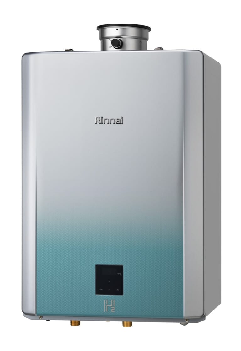 リンナイが開発に成功した100%水素燃料の家庭用給湯器。オーストラリアで実証事件を行っているという。
