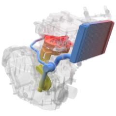 冷却経路の入口にサーモバルブを設置し、水温調節するため、水温の安定が早い。オイルクーラーはVストローム800DEと異なる専用品。