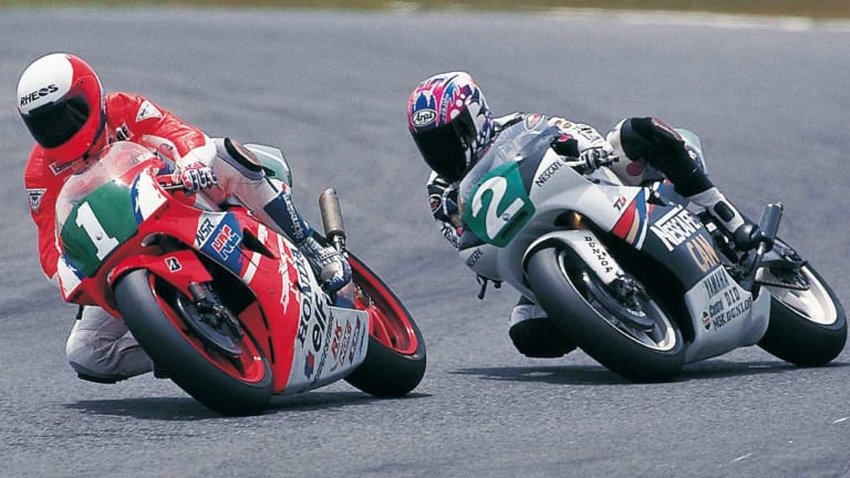 なぜかって? 「2」は、全日本250クラスで岡田忠之さんからなかなかタイトルを奪えず、’91〜’92年に付けざるを得なかった番号だから! 「2」には悔しい思い出しかありません(笑)。’92年にようやく岡田さんに勝ってチャンピオンになりましたが、翌’93年には世界GPに行ってしまったので、実は僕は全日本ではゼッケン1を付けていないですよね……。’93年にスポット参戦したSUGOと筑波ではゼッケン1で走りましたが。