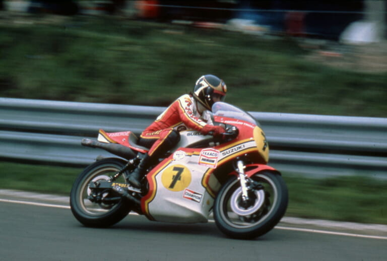 実は、パーソナルナンバーを使うことに、ちょっとした憧れもあったんです。それは、ポケバイをやっていた子供の頃から好きだった、バリー・シーンさんの影響です。バリーさんは’76〜’77年に2年連続で世界GP500ccクラスチャンピオンになっていますが、当時としては異例なことに、ゼッケン1を付けずにゼッケン7を使い続けたんです。