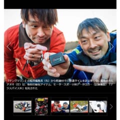 デジスパイスIVで0-60km/h加速タイムを計測するの図。ちなみに青木タカオ氏は、ヤンマシ界隈では“アオチ”と呼ばれる、元々はヤングマシン姉妹誌のビッグマシン編集部員でもあった男である。 ※写真は週プレNEWSより