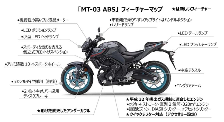 ヤマハ MT-03 ABS のフィーチャーマップ