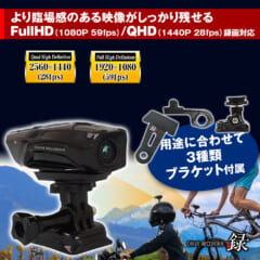 FullHD(1080p/59fps)/QHD(1440p/28fps)録画対応。激しい動きの撮影シーンでもしっかり記録し、より臨場感のある映像がしっかり残せる。危険なあおり運転をされた場合でも、相手の車のナンバープレートを確実に記録する。
