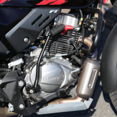 油冷4サイクルOHC4バルブ単気筒200ccエンジンを心臓とし、その最高出力は19.1psと十分。排気量からイメージする以上にパワフルな走りを楽しめる。