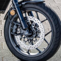 Y字5本スポークのホイールやモノブロックラジアルマウントキャリパー&330mmフローティングディスクのFブレーキなどもレブル1100と共通。