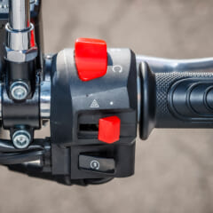 ホイールサイズはフロント19インチ、リヤ18インチ。ホイールトラベル量はフロント121mmに対し、リヤは55.5mmとかなり短めとされる。ブレーキディスク径はフロントφ300mm/リヤ240mm。