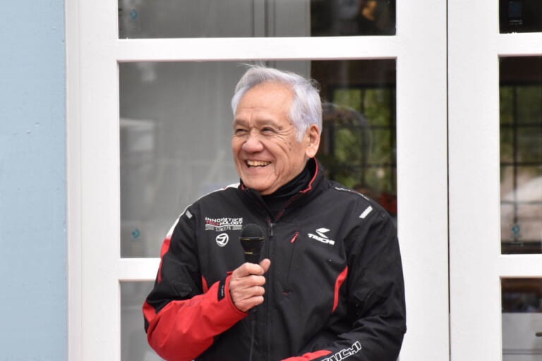 取材会に先立って開催されてセレモニーでは、施設の建設やデザインにかかわった業者が壇上に上がって挨拶、さらには中野真矢さんの師匠にあたるSP忠男の社長・鈴木忠男さん、アライヘルメット副社長の新井章仁さんが愛とユーモアにあふれたメッセージを贈り、チームや恩人を大切にしてきた中野さんの人柄をうかがわせた。
