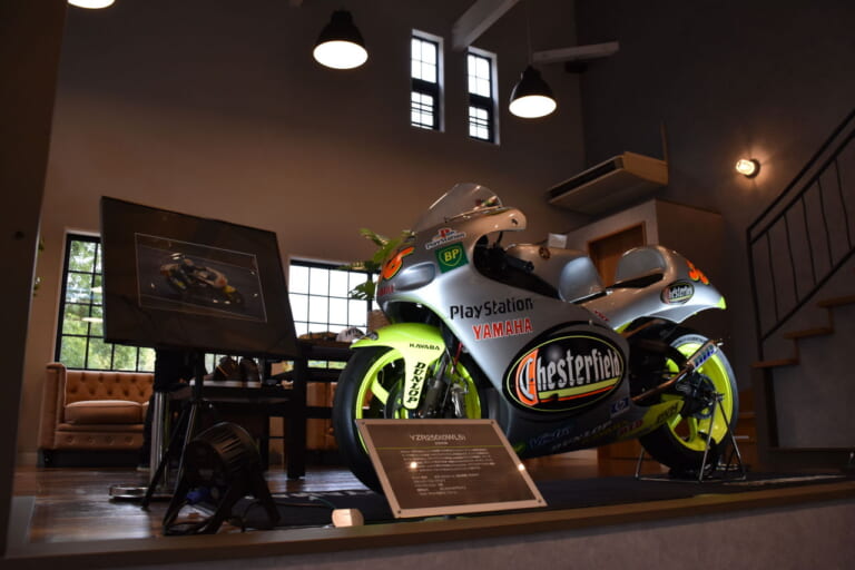 プレオープンの展示のためにヤマハ発動機が貸与してくれたという2000年式YZR250。次にお目見えするのはYZR500という噂も?!