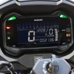 フルLCDによる多機能メーター。ギヤ段数表示/平均燃費計/オイルチェンジインジケーター、500rpm刻みで任意に設定できるエンジンRPMインジケーターなどを備えている。