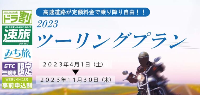 その代わりとはならないにしても、例年、4月下旬からスタートしていた「ツーリング割引」と、2年目になる「二輪車定率割引」が新年度早々の4月1日から開始されることになりました。これも業界側から早く始めて欲しいという強い働きかけの効果とのことです。