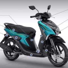 「環境対応型リサイクルポリプロピレン材」の採用例(写真はインドネシア市場向け「GEAR125」)