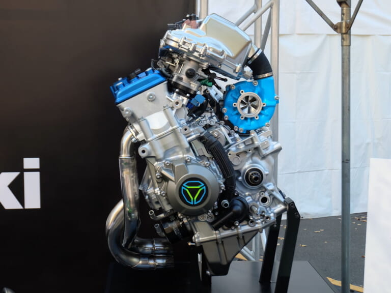 日本でも、国内4メーカーにトヨタとデンソーが加わった6社で水素エンジンの研究チームを作って試験車両を走らせているし、カワサキもH2のスーパーチャージドエンジンをベースとした水素エンジンを昨年のEICMAで公開した。水素を燃料としてエンジンを残そうという動きも活性化してきているのである。