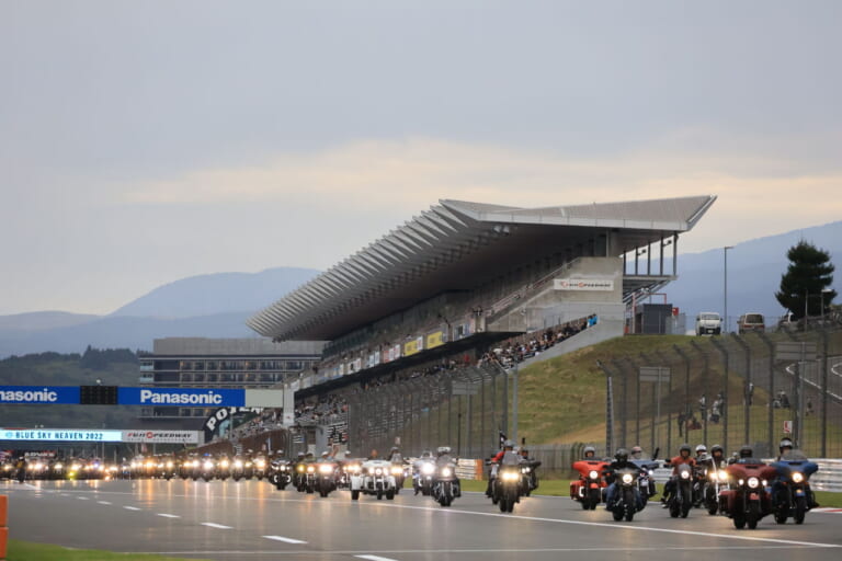 2022年、4年ぶりに開催されたブルー・スカイ・ヘブン。何千台ものH-Dが富士スピードウェイに集合し、数々のアクティビティを楽しんだ。圧巻は、国際レーシングコースを埋め尽くすようだったパレードラン。まさにH-Dオーナーだけの特権だ。