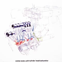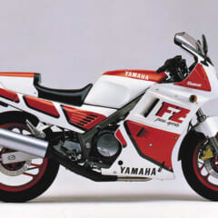 【'85 YAMAHA FZ750】■水冷4スト並列4気筒DOHC5バルブ 749cc 77ps/9500rpm 7.0kg-m/6500rpm ■車重209kg ■タイヤサイズF=120/80R16 R=130/80R18 ●当時価格:79万8000円