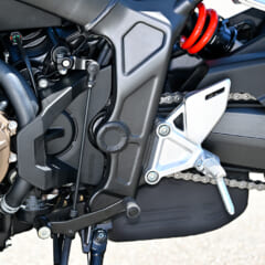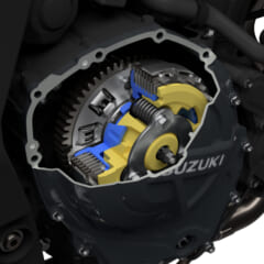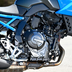 【SUZUKI GSX-8S】8Sの心臓部は完全新開発の775ccDOHC4バルブ水冷4スト並列2気筒。270°クランクが鼓動感を生みつつ、スズキ・クロスバランサーがスムーズな回転特性を実現する。アシストスリッパークラッチや冷却システムも最新設計。