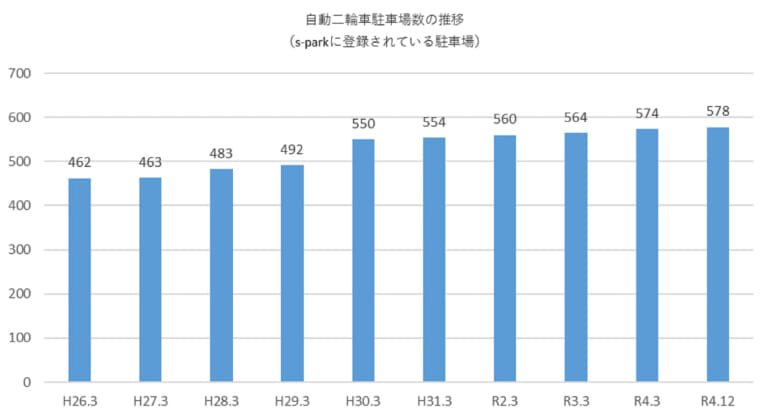 (図1)自動二輪車駐車場の推移 ※s-park登録駐車場数