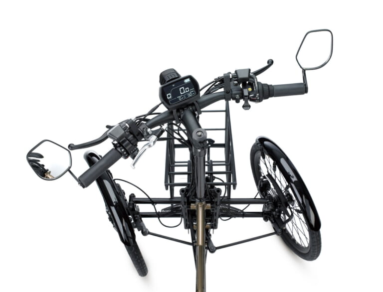 自転車感覚で気軽に跨ることができ、前2輪/後1輪のレイアウトと独自のステアリング機構で軽快な運転感覚を実現。加速するにはスロットルレバーを押すだけというイージーさで、低い位置にセットされたバスケットには20kgまでの荷物を搭載可能だ。