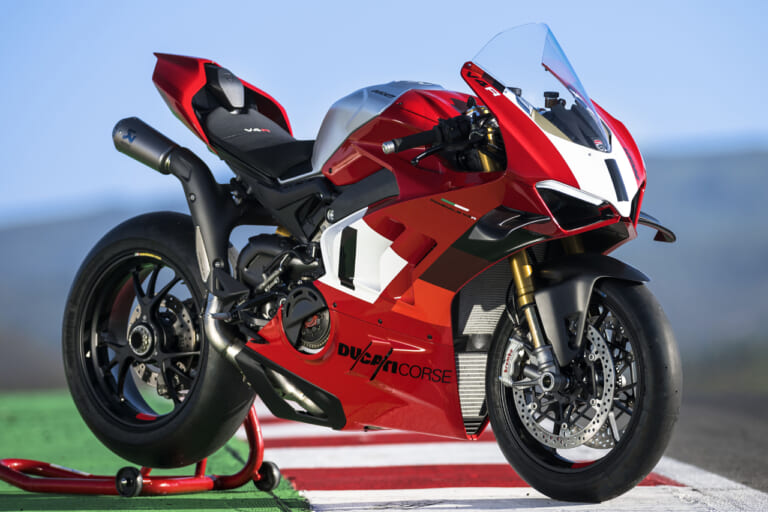 【ライバル勢はパワーもエアロも盛りまくり】モトGP/SBKともに絶好調の伊ドゥカティ。同社最強の市販車であるパニガーレV4Rは巨大なウイングレットや218psの最高出力を誇る。また、BMW4輪のレーシングブランド「M」を冠したBMW M1000RRは、逆回転クランクや可変バルブシステムなどを持つS1000RRをベースに、カーボンを多様したエアロパーツなどを装備し、出力も212psを公称する。