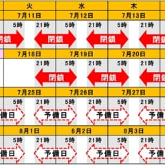 NEXCO東日本は、E14館山自動車道(以下「館山道」)木更津南インターチェンジ(以下IC)の国道16号側入口ランプにて舗装補修工事を行うため、夜間閉鎖を実施すると発表した。 目次 1 工事概要2 日時3 迂回路(川崎方面・千葉方面・茂原方面) 工事概要 館山道木更津南IC入口ランプ(国道16号側)において、舗装補修工事を行うため夜間ランプ閉鎖を実施。工事実施に当たって通常の車線規制では施工できな […]